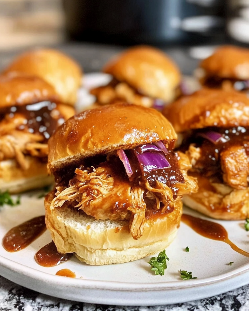 A: You can prepare the chicken ahead of time, but assemble the sliders just before serving to prevent the buns from getting soggy.