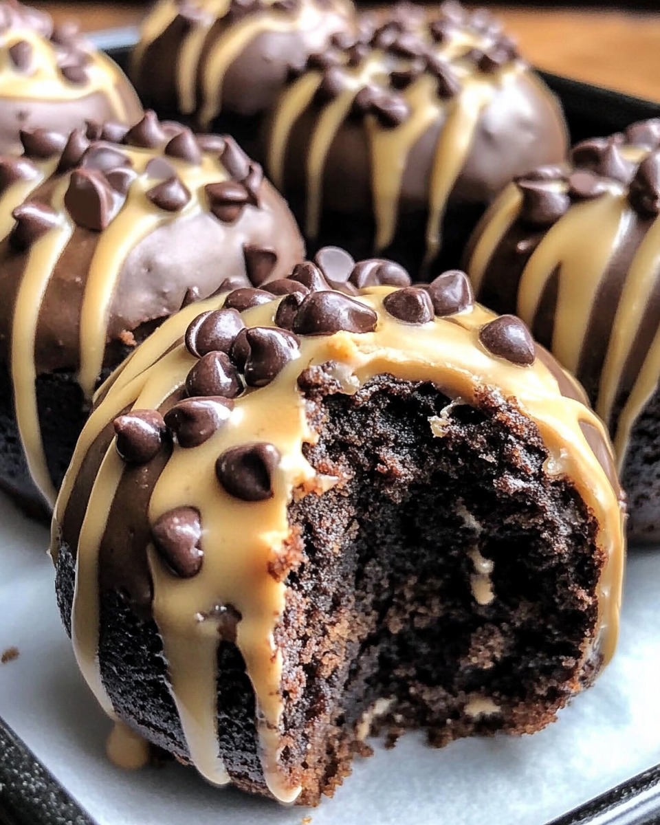 - Dip each cookie dough brownie bomb into the melted chocolate until fully coated.