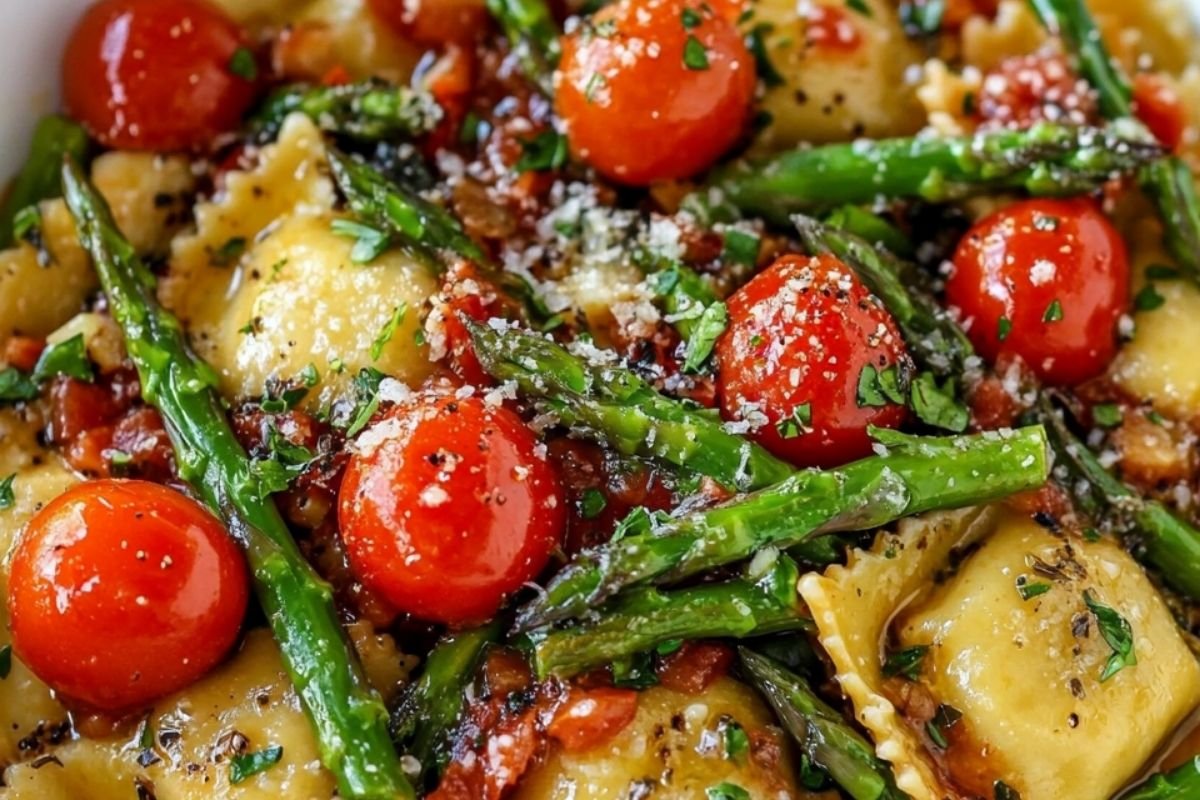Fresh Ravioli with Tomatoes, Asparagus, Garlic & Herbs – Easy Pasta Dinner
