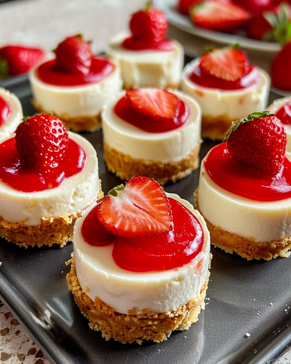 Mini Strawberry Cheesecakes are a delightful dessert that combines the creamy richness of cheesecake with the sweet and tangy flavor of fresh strawberries. These mini cheesecakes are perfect for parties, gatherings, or just as a special treat for yourself. They are easy to make and sure to impress your family and friends!