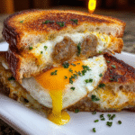 This hearty dish combines the rich flavors of savory sausage, creamy eggs, and gooey cheese, all nestled between two slices of golden-brown, buttery bread. It’s a satisfying way to enjoy breakfast, and best of all, it’s easy to make at home, allowing you to customize it to your liking.