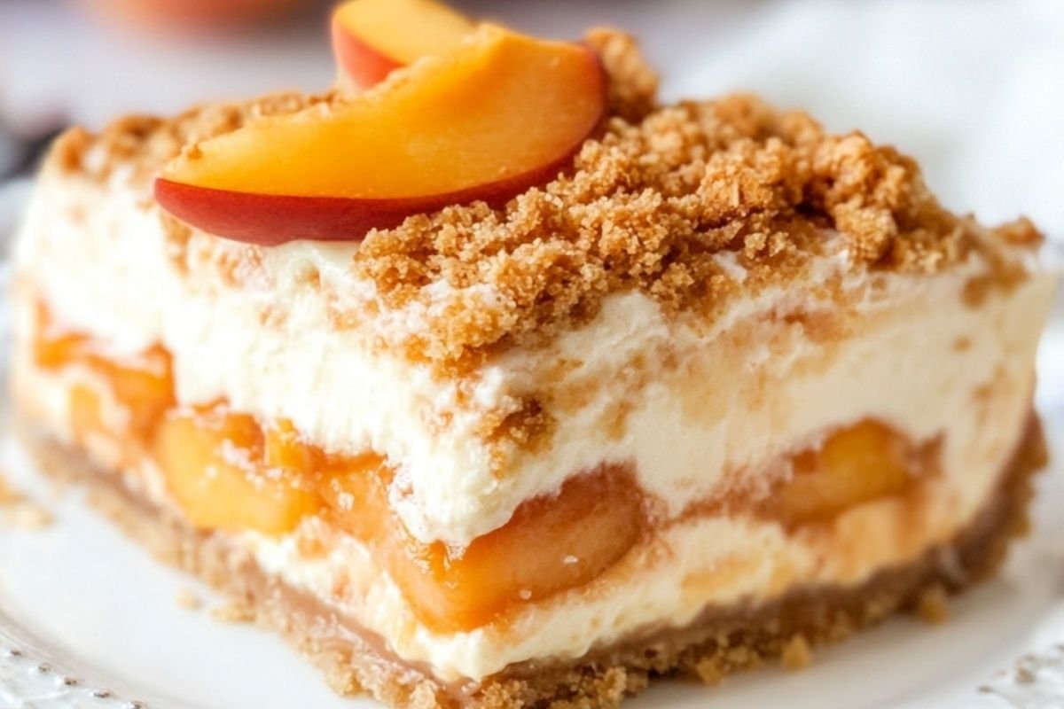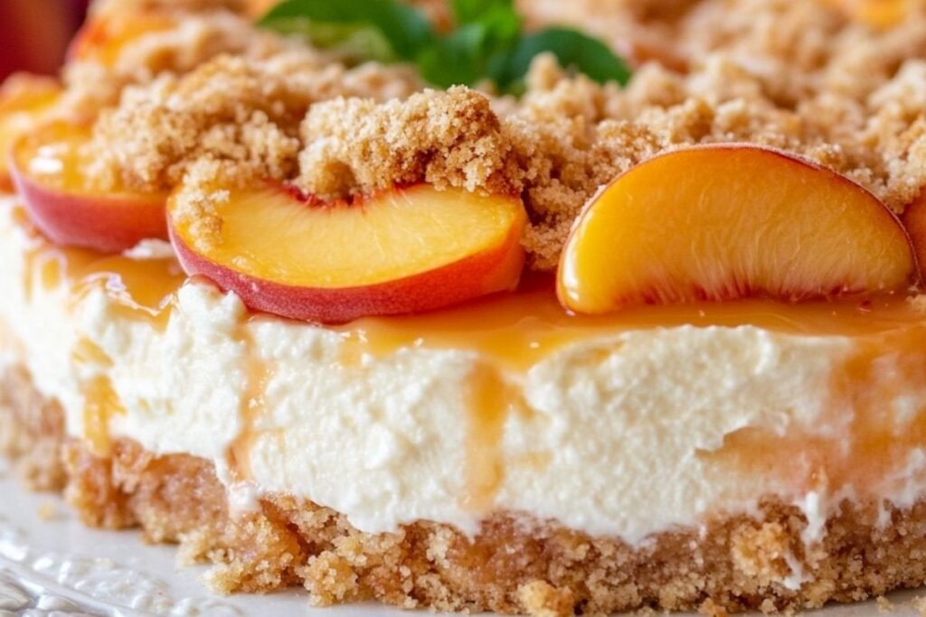 Combining these creates a layered dessert where the smooth cheesecake base is topped with juicy, cinnamon-spiced peaches and a buttery crumble. The result is an elegant, crowd-pleasing dessert with a perfect harmony of flavors and textures.